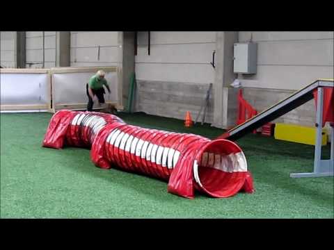Käytiin eilen Kikan ja Speedyn kanssa hallilla, mukaan pääsi tällä kertaa vain Muru, ja Minttu sai jäädä kotiin. Tehtiin pientä harjoitusta, jossa tarkotuksena oli joko rytminmuutoksella, vedolla tai vastakäännöksillä saada koira just siihen toiseen putkenpäähän, ei siihen, mikä on suoraan edessä! Speedyllä toimi rytminmuutos tosi hyvin, samoin veto. Murunkin kanssa rytminmuutos toimi, mut luotettavammaks koin vastakäännökset.